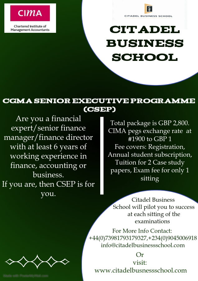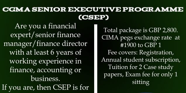CGMA Senior executive programme (CSEP) is for you. With less than 6 months, become a CIMA member with ACMA CGMA qualifications.